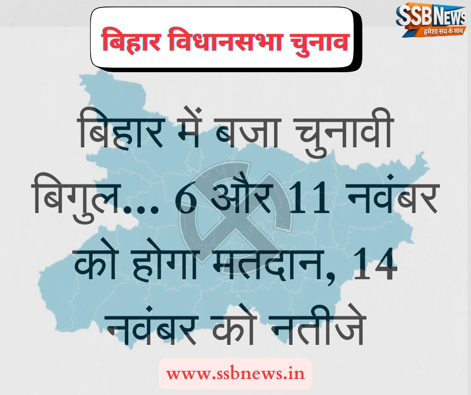 चुनाव आयोग ने आज बिहार विधानसभा चुनाव 2025 की तिथियों का ऐलान कर दिया है। इस बार चुनाव दो चरणों में होंगे और मतगणना की तारीख भी तय कर दी गई है।